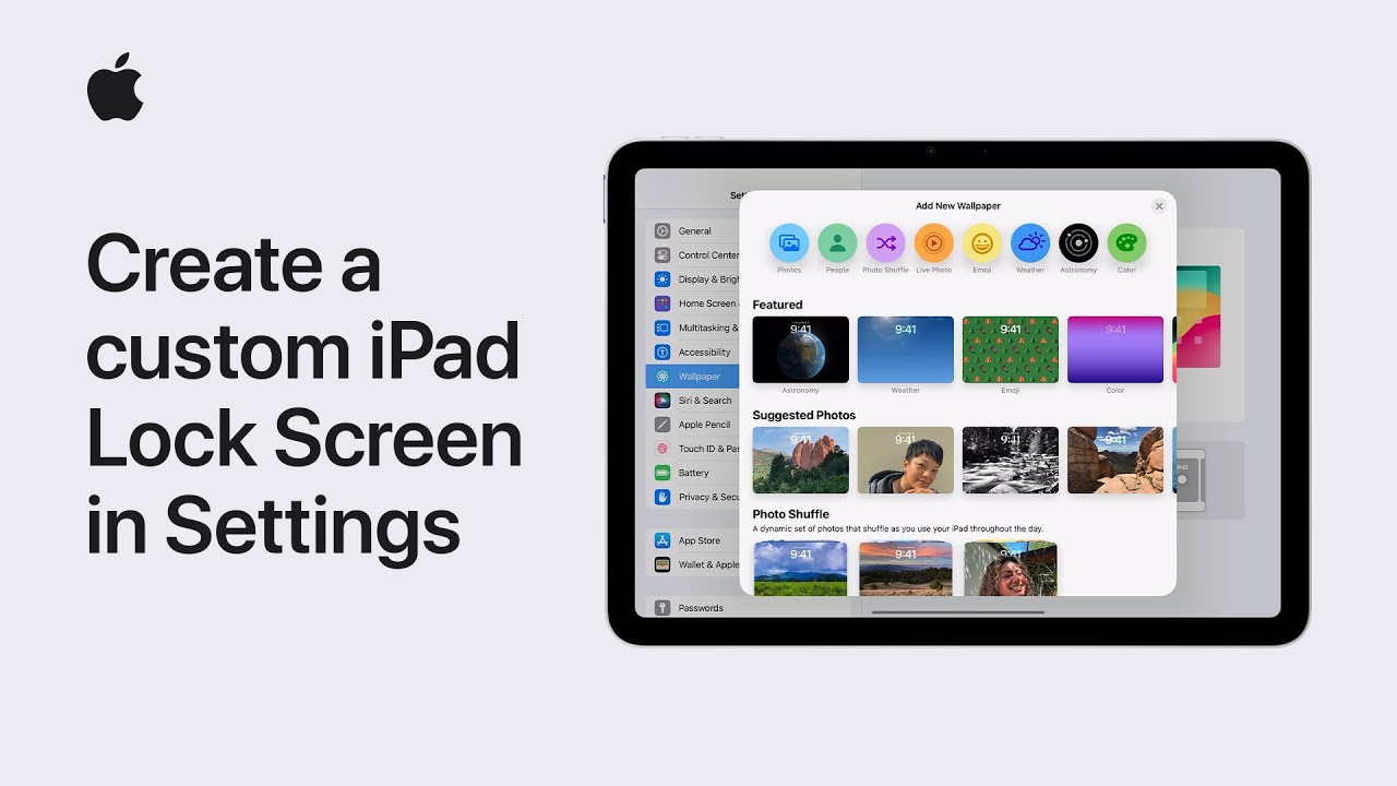 To create a custom lock screen on your iPad, open the Settings app, scroll down, and tap on “Wallpaper.” Then, select “Add New Wallpaper” to begin customizing. You can choose a lock screen style and personalize it with photos, widgets, and other options to make it uniquely yours. This process allows you to tailor the lock screen to your preferences, adding a personal touch to your device. For more information on customizing your Apple devices, you can subscribe to the Apple Support YouTube channel or explore additional videos for further guidance.