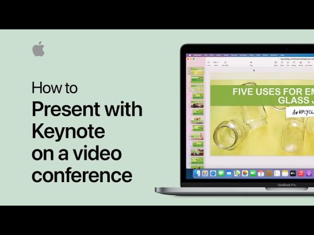 To present using Keynote while video conferencing on your Mac, start by opening Keynote and selecting “Play” from the menu bar, then choose “Play Slideshow in Window.” In your video conferencing app, select Keynote from the share menu; the steps might differ slightly based on the app you’re using. Your presenter controls will appear in a separate window where you can show or hide slide thumbnails by clicking the Thumbnail button. Navigate through your slides using the arrow keys on your keyboard. This setup ensures a smooth presentation while managing your video conference.
