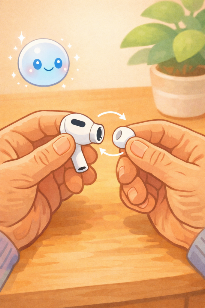 – Align the new ear tip with the oval-shaped connector on the AirPod.