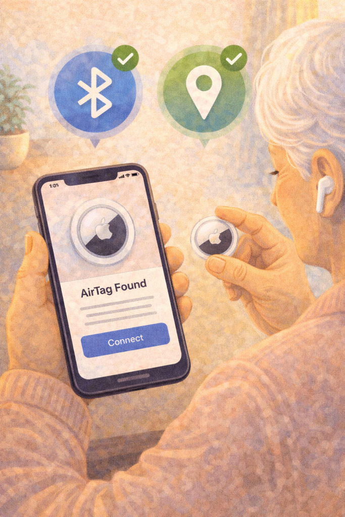 • Hold the AirTag near your iPhone, tap Connect, name it (e.g., Backpack), then Continue and Agree.