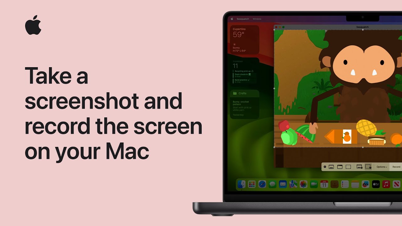 – For screen recording, press Shift + Command + 5, choose to record the entire screen or a portion, and click Record.